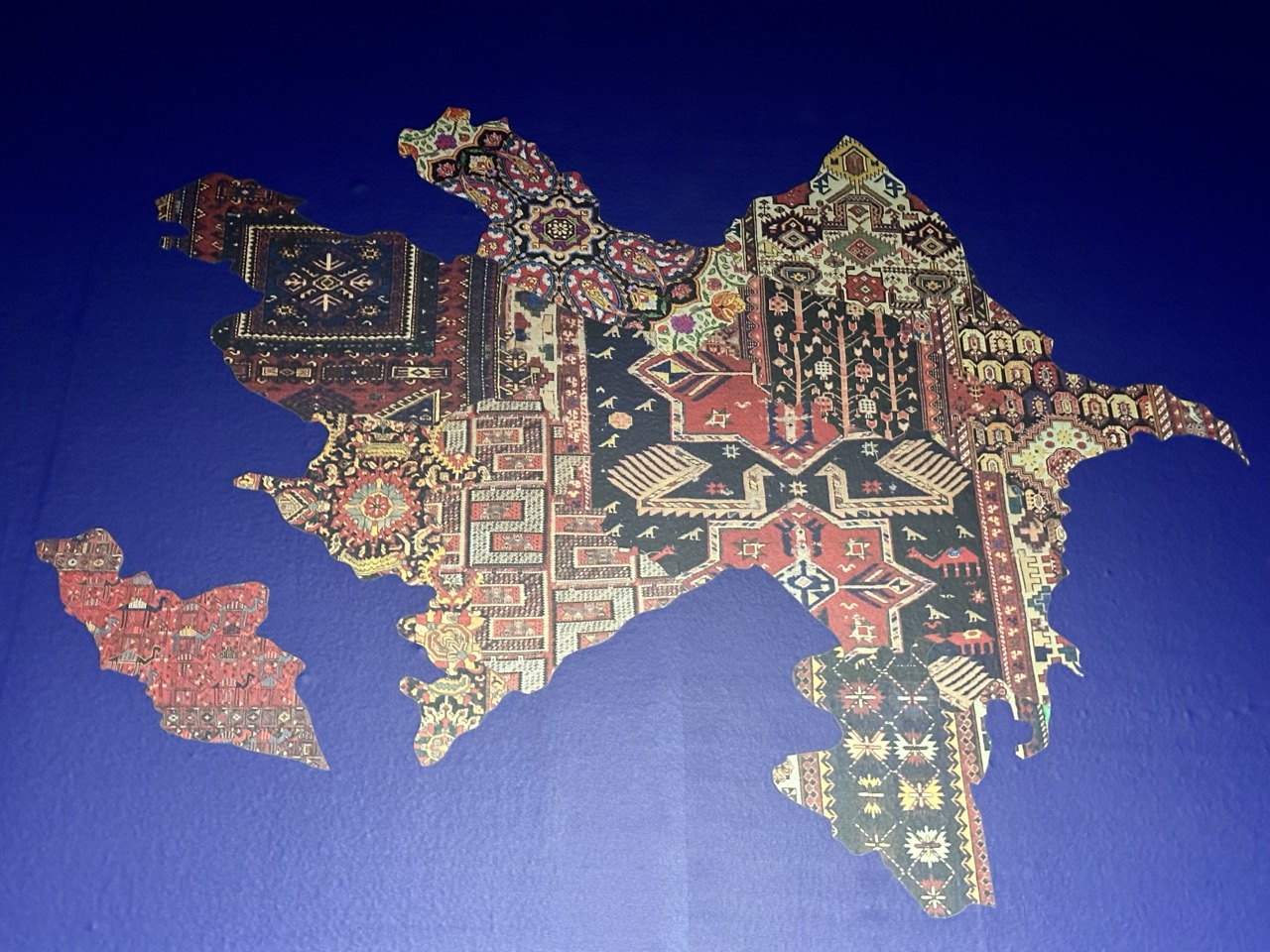 前面讲到了阿塞拜疆复杂的领土问题,所以自然阿塞拜疆人在这件事情上也非常敏感。在阿利耶夫文化中心,最让我印象深刻的是一系列用阿塞拜疆的传统工艺——毛毯和纺织——来表达阿塞拜疆完整国土的作品。