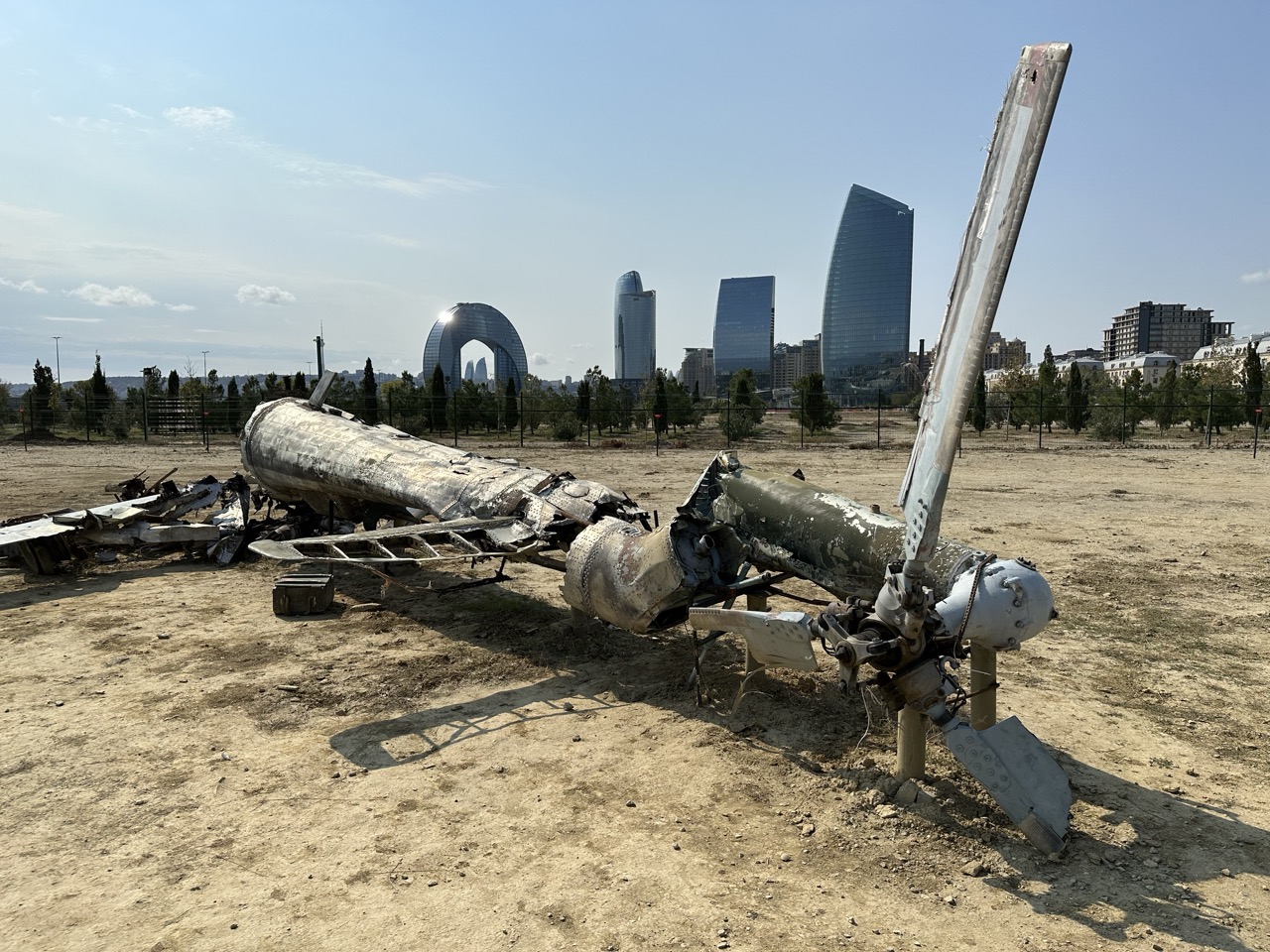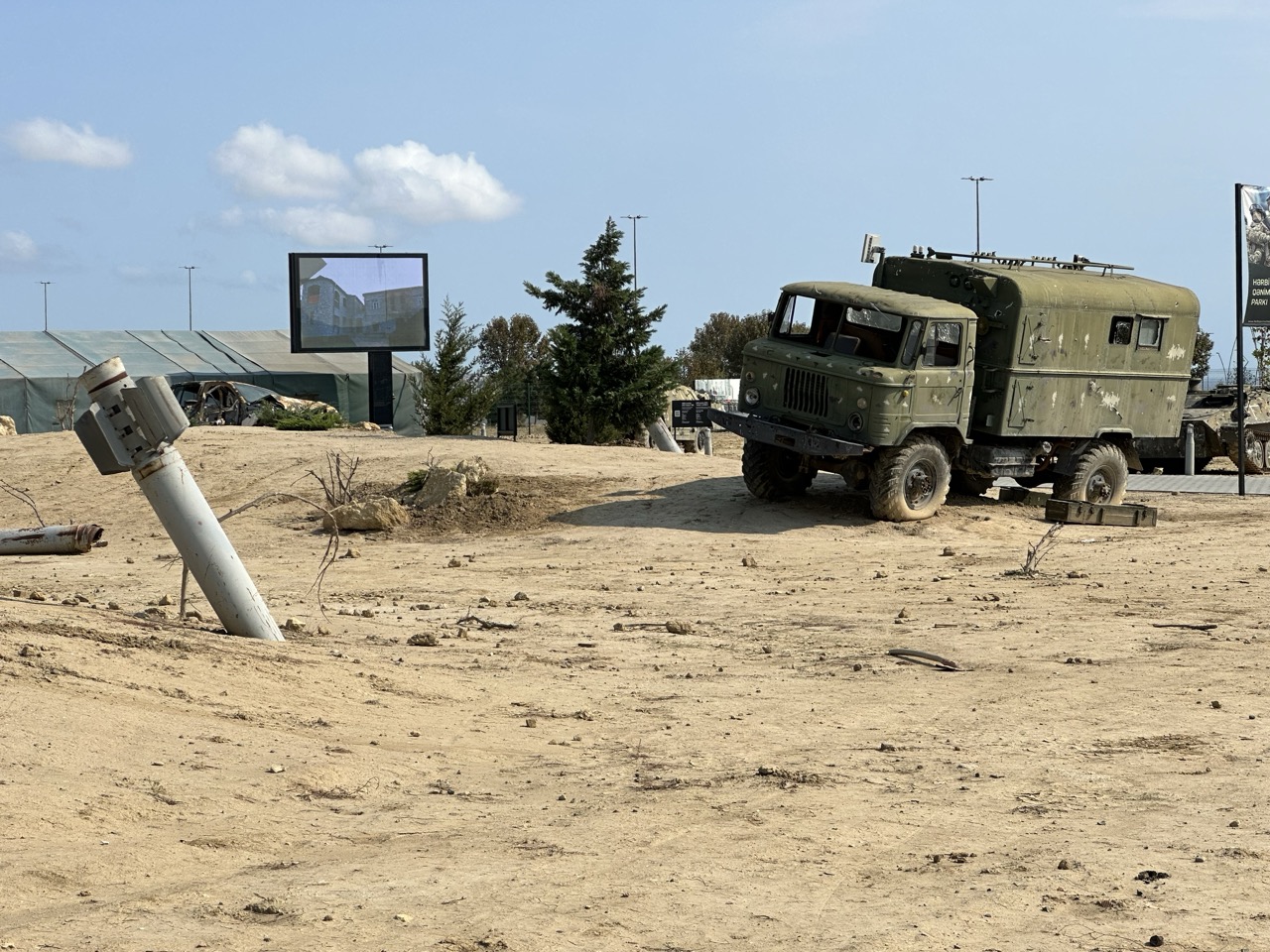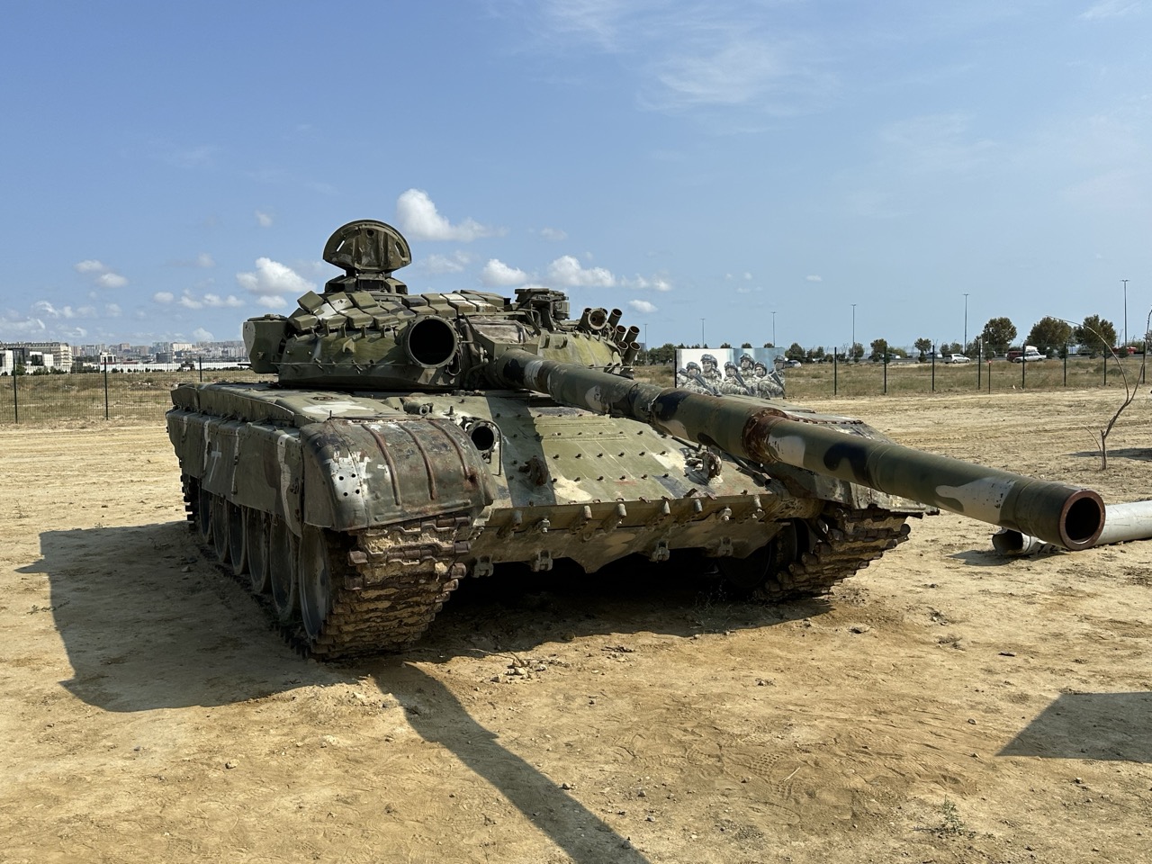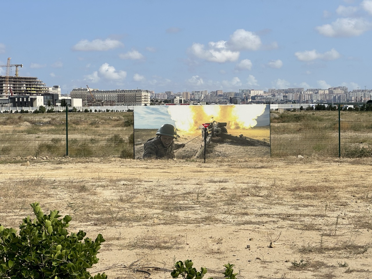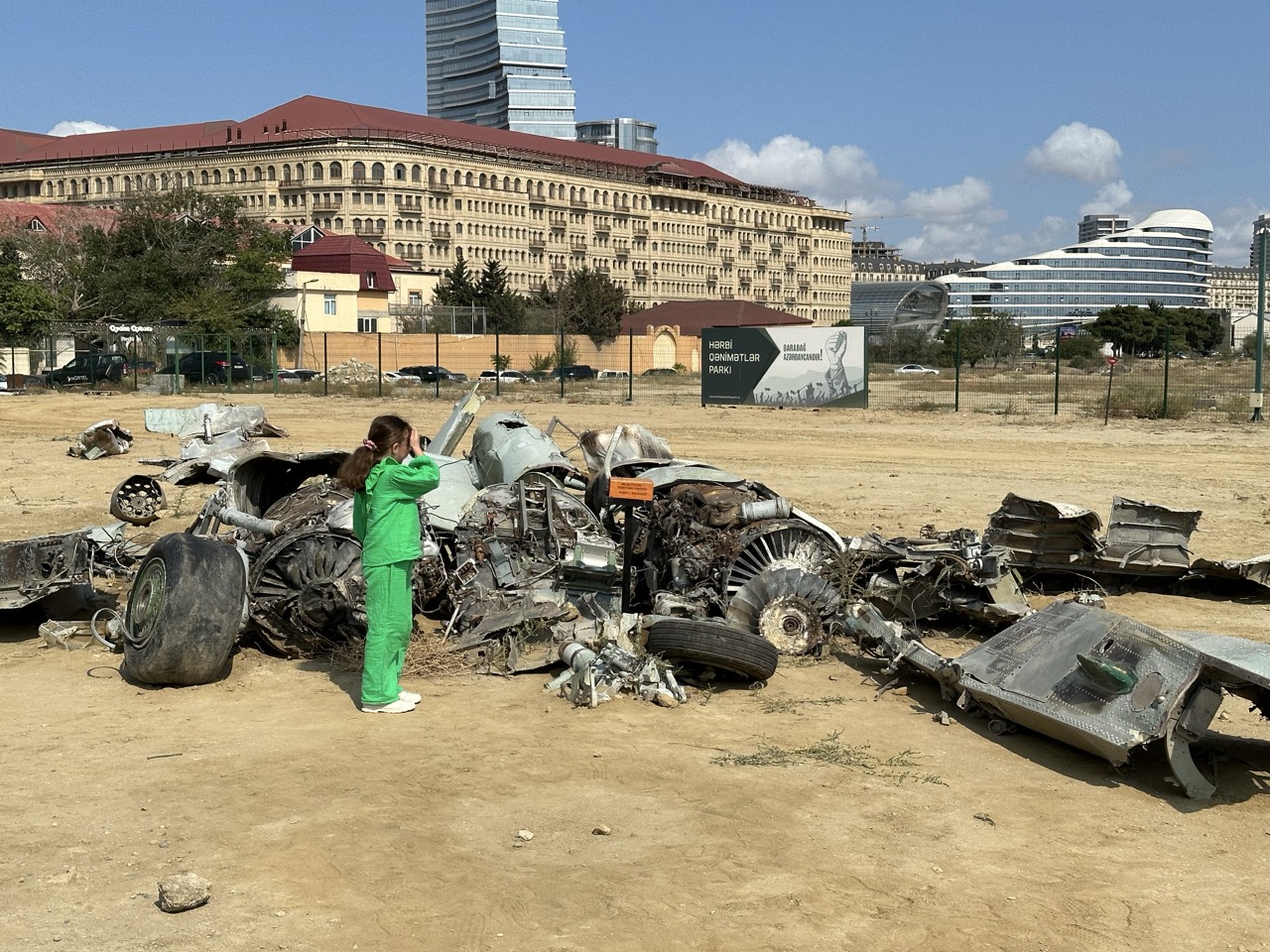 前面讲到在大部分历史时间里,阿塞拜疆一直是被亚美尼亚压着打,所以长期以来积累了无数的窝火,直到最近几年才胜仗频出,特别是一周多前彻底解决了纳卡问题,所以自然要向民众大肆宣扬战果。但我从来没有见过一个国家会对战争的宣扬像阿塞拜疆这么露骨,直接在市区腾出一大片空地,把真实的战场摆进市区,而且摆的还是亚美尼亚的军营,所有装备素材全部都是从亚美尼亚那里得到的战利品,从床铺,宣传海报到实实在在的坦克军车和飞机,直接 1:1 还原,甚至还建了大量战壕和铁丝网带。从博物馆角度来说,这是我去过的最真实的博物馆。从人性角度来说,看着那些小孩笑嘻嘻地在坦克上爬来爬去,心里很不是滋味。