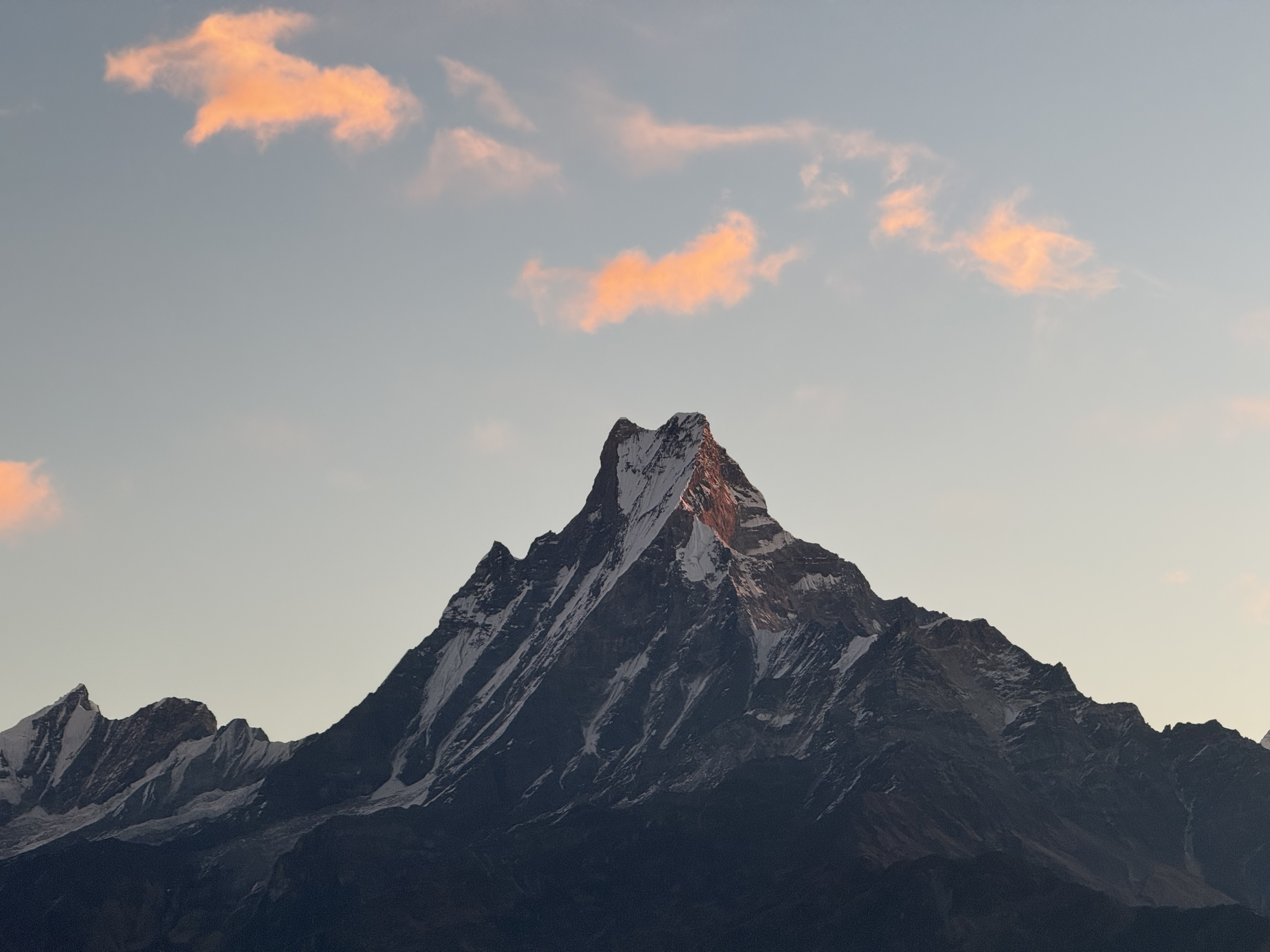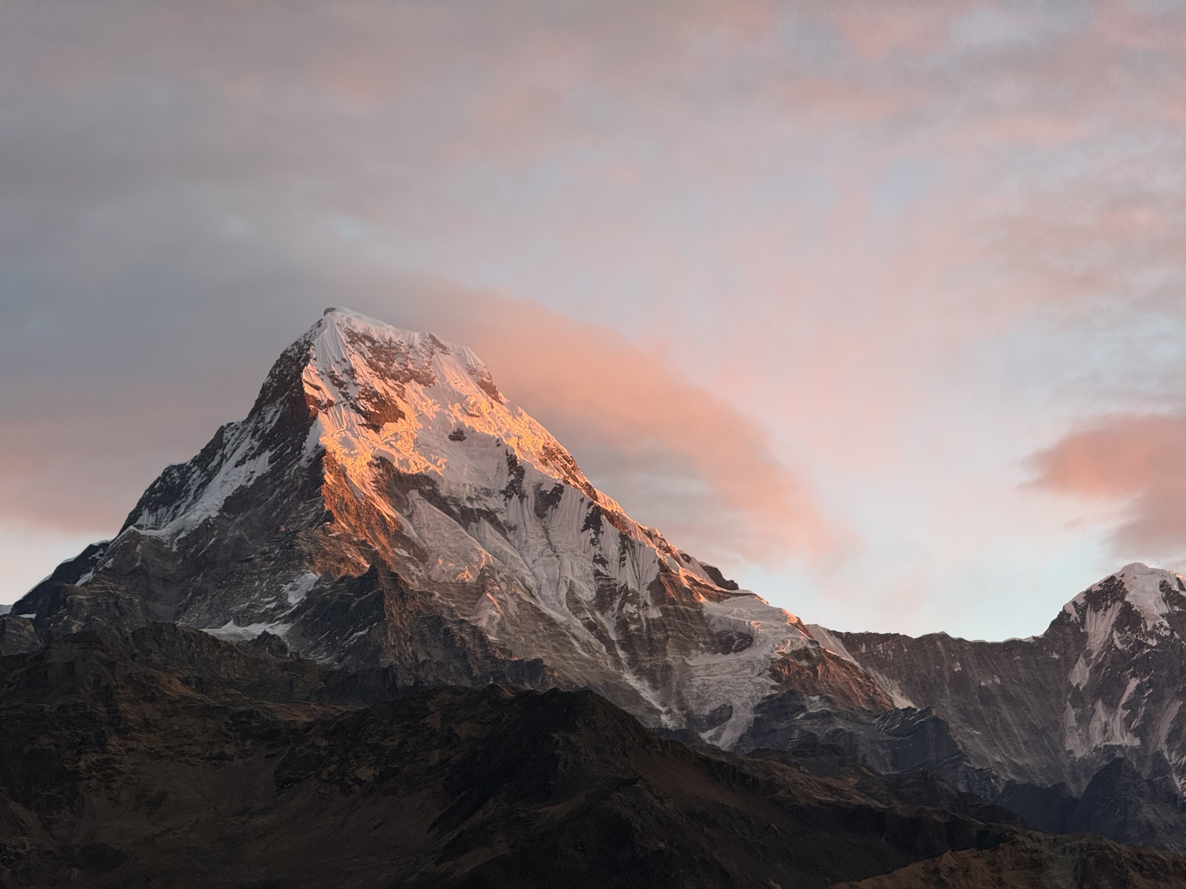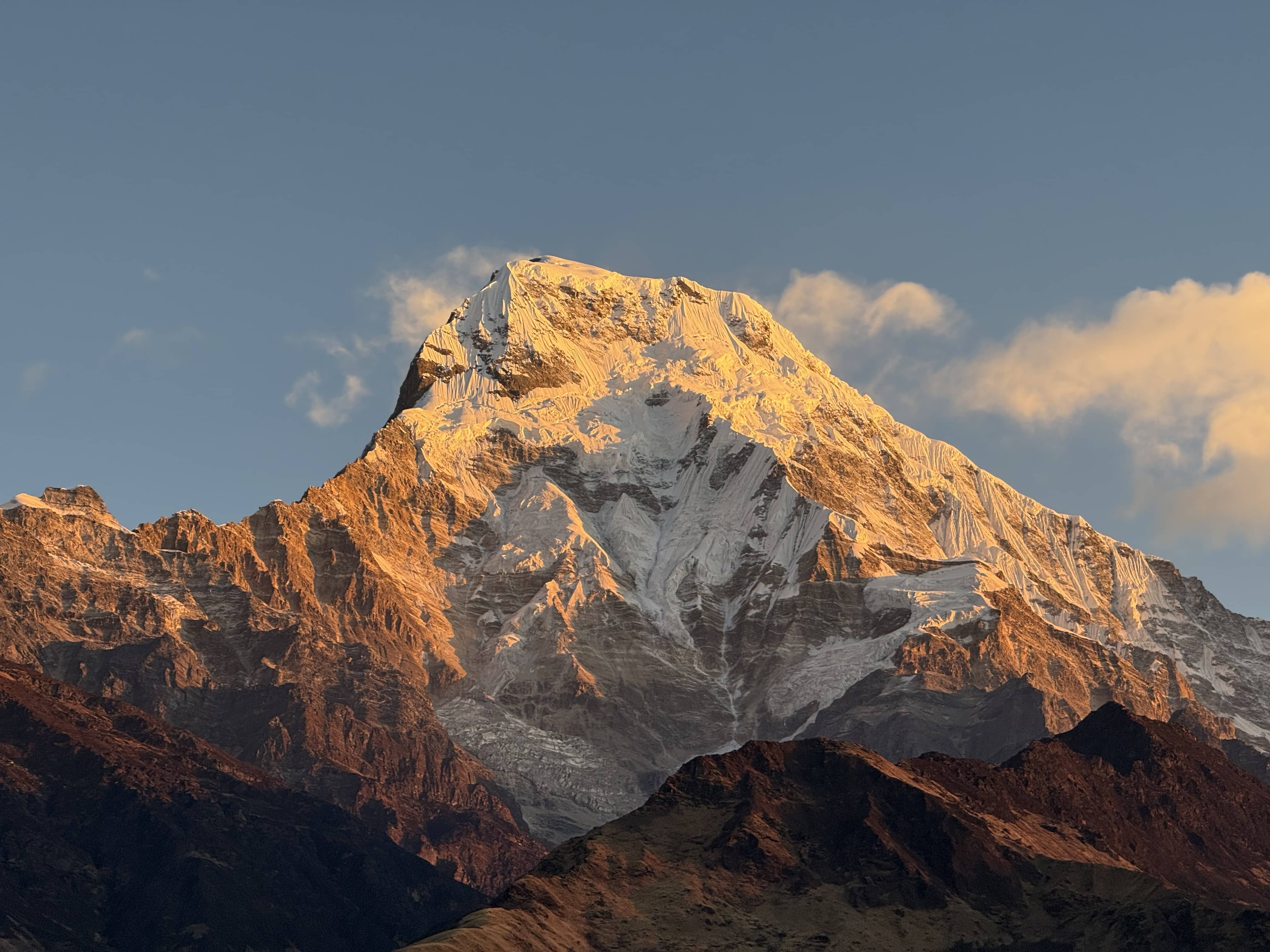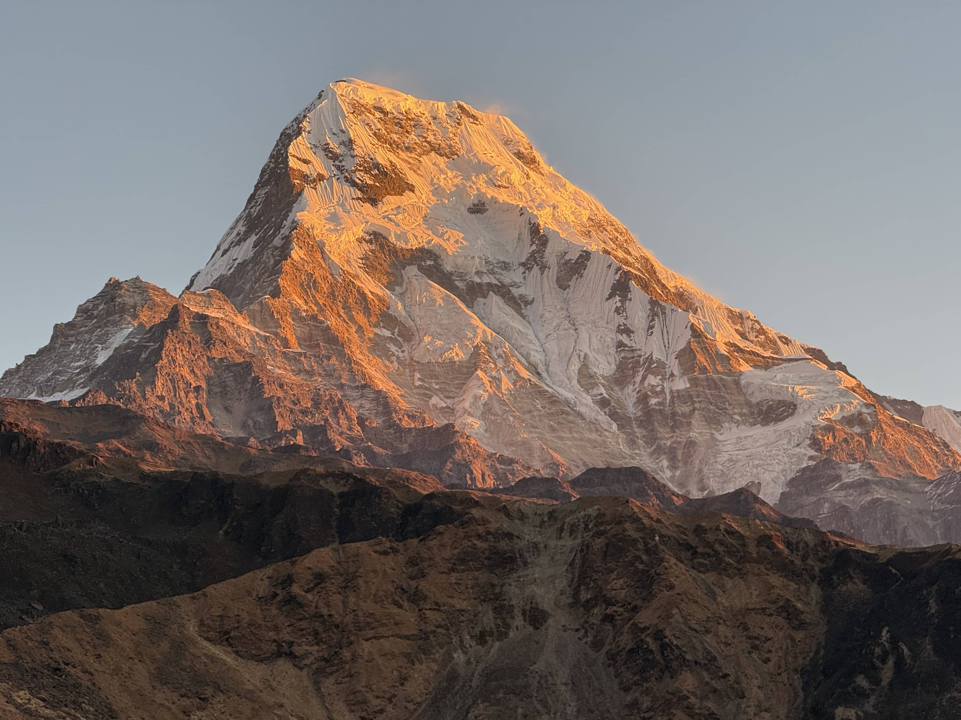 早上起来,我们就在 Tadapani 看到了壮丽的安纳普尔纳南峰和鱼尾峰的日照金山: