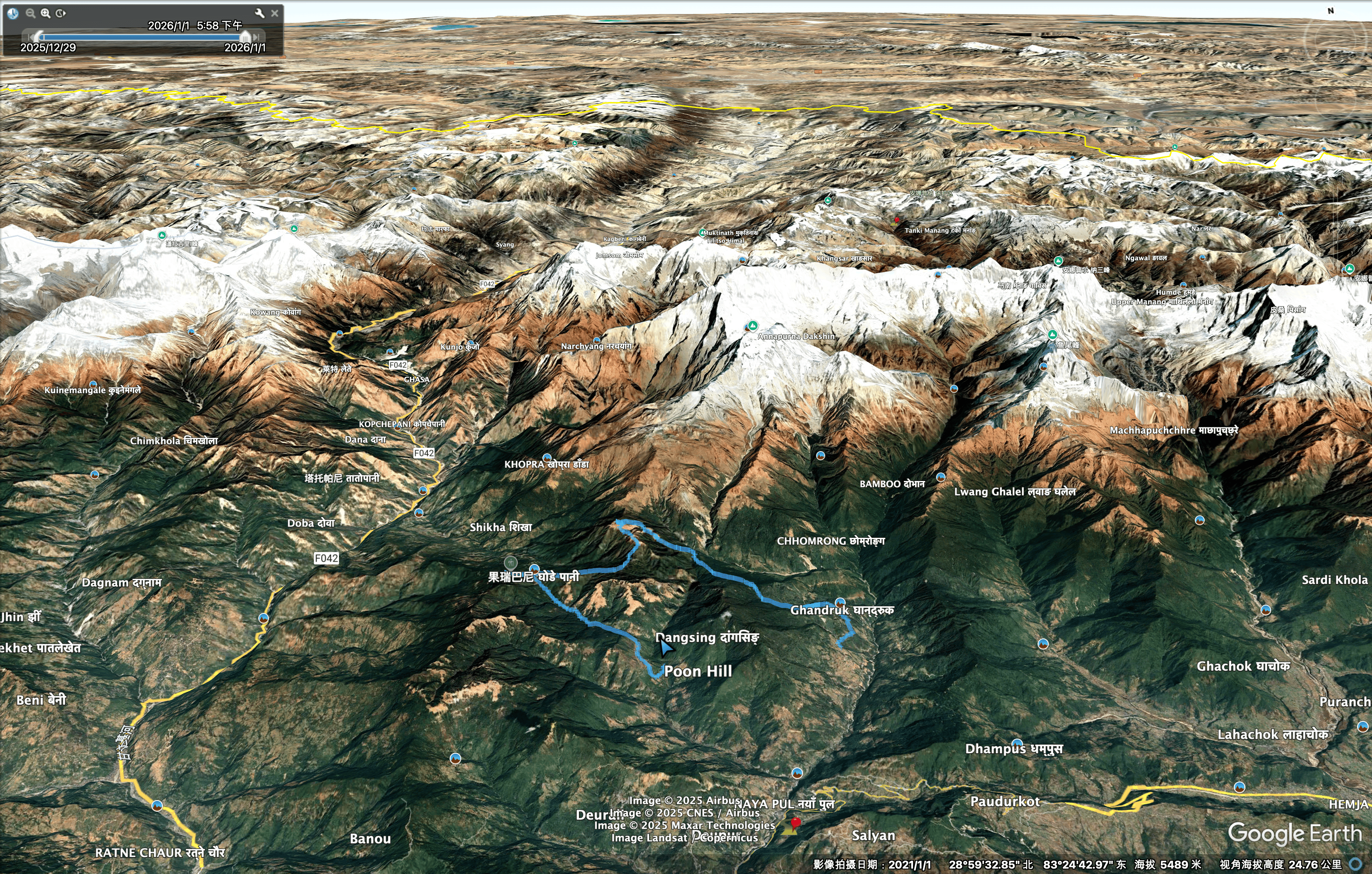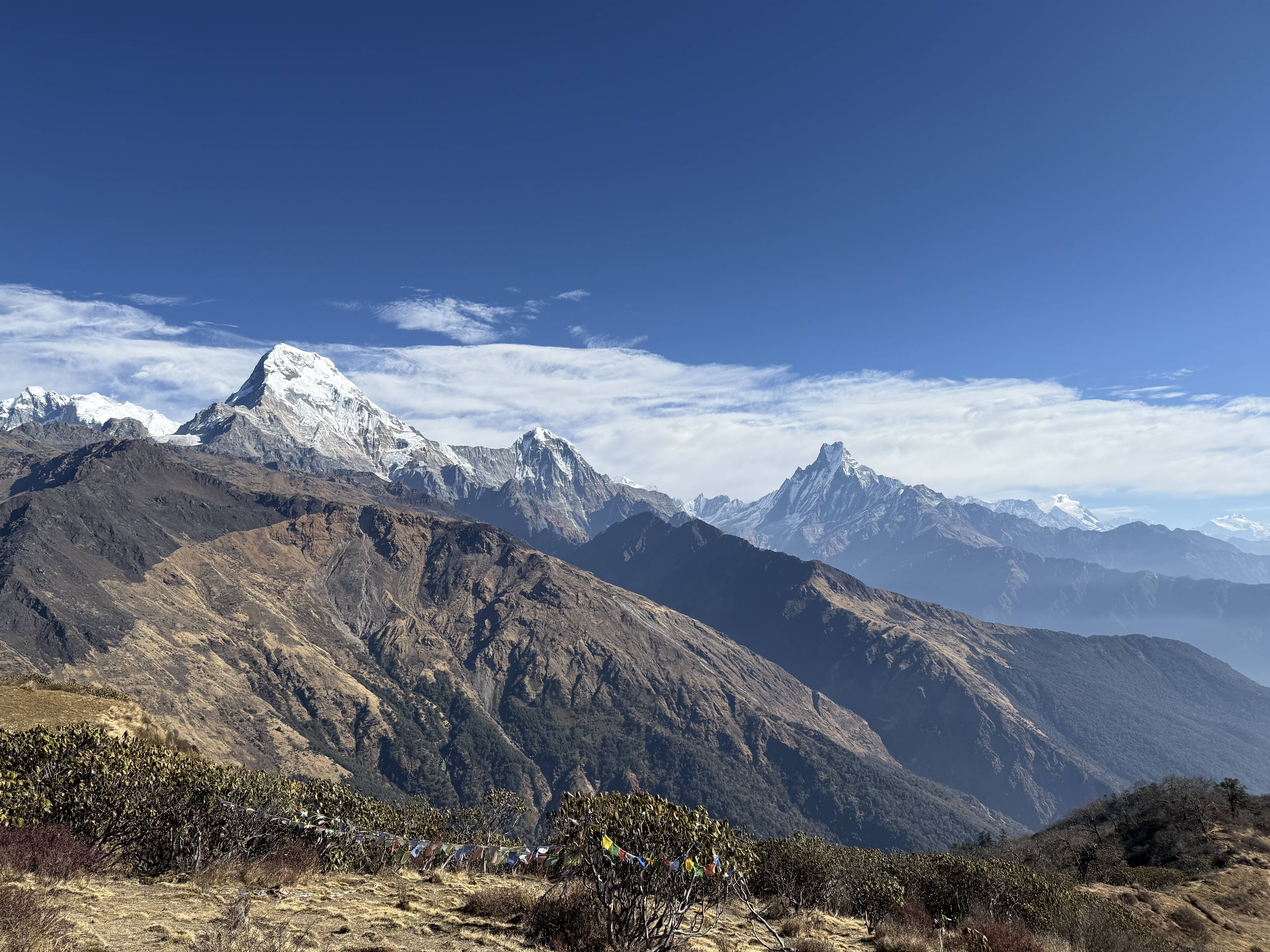 2025 年 12 月跨年之际,为了赶在假期作废之前销假,我报了国内稻草人的一个徒步团,前往尼泊尔安纳普尔那山区进行了为期四天的 Poon Hill 小环线徒步。